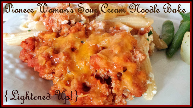 Here is a link to the original Pioneer Woman recipe--->Sour Cream Noodle Bake and if you would like to try my lightened up version, you will find the recipe below. Enjoy!